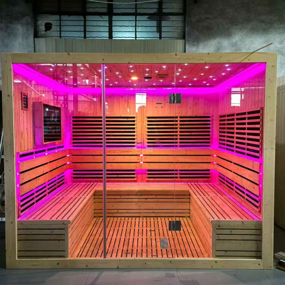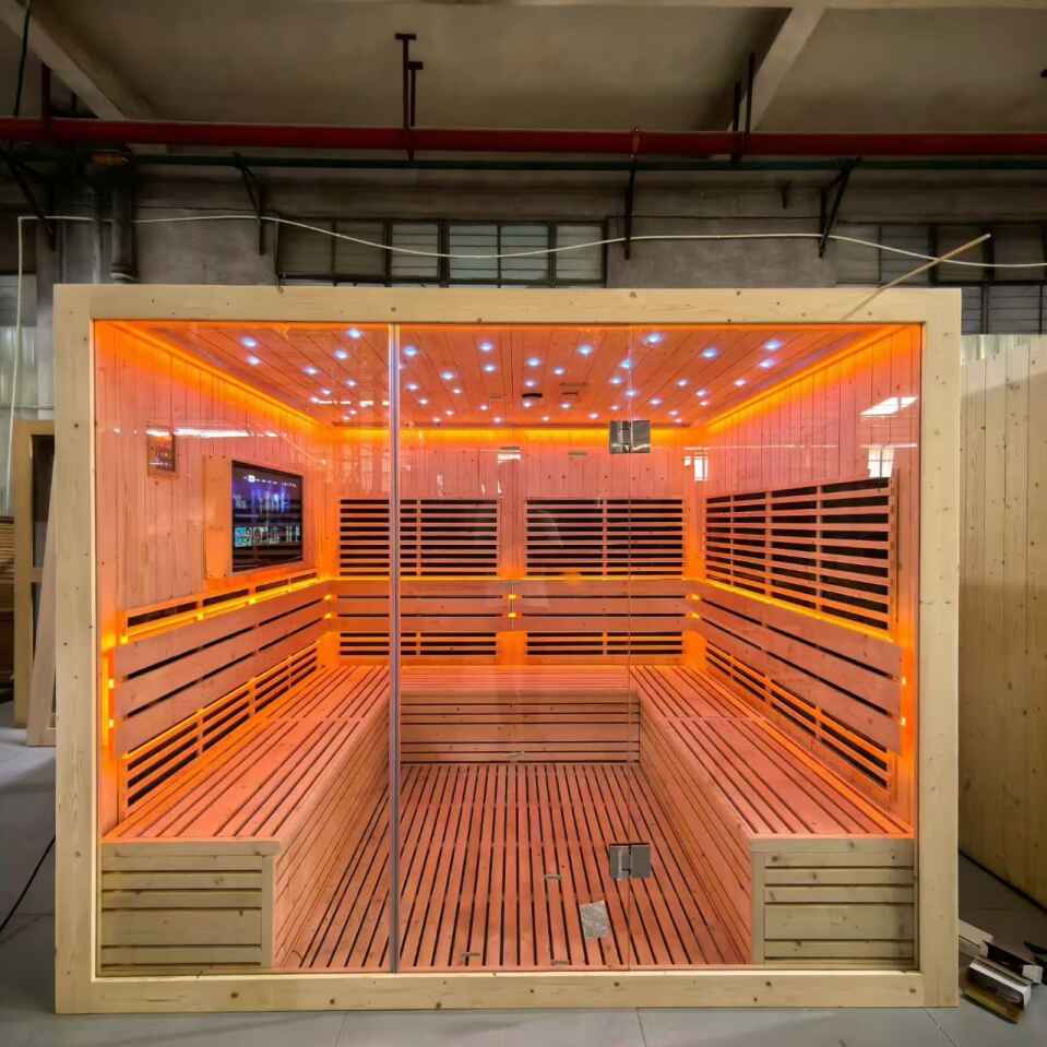 کیا آپ گروپ میں نرمی ، سماجی کاری ، یا تجارتی استعمال کے لئے ایک وسیع و عریض اور پرتعیش سونا حل تلاش کر رہے ہیں؟ ایل سی ڈی ٹی وی کے ساتھ ہمارا 5-10 شخص سونا ووڈ دور اورکت سونا کمرہ آپ کی ضروریات کو پورا کرنے ، پریمیم مواد ، جدید ٹکنالوجی ، اور انسانی مرکزیت والے ڈیزائن کو مربوط کرنے کے لئے تیار کیا گیا ہے۔